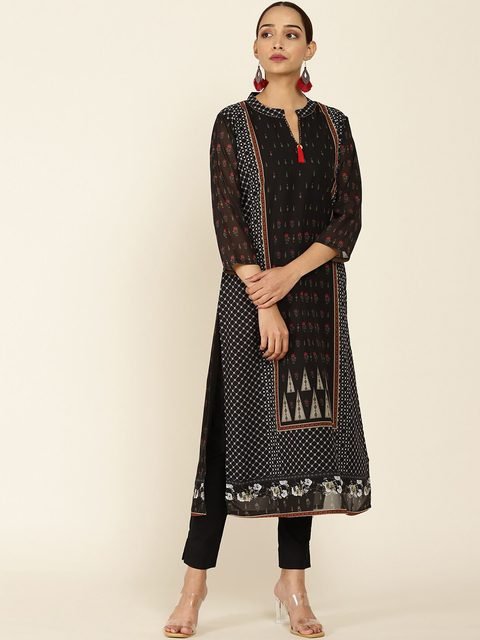 Soch Women Black Geometric Printed Georgette Straight Kurta
